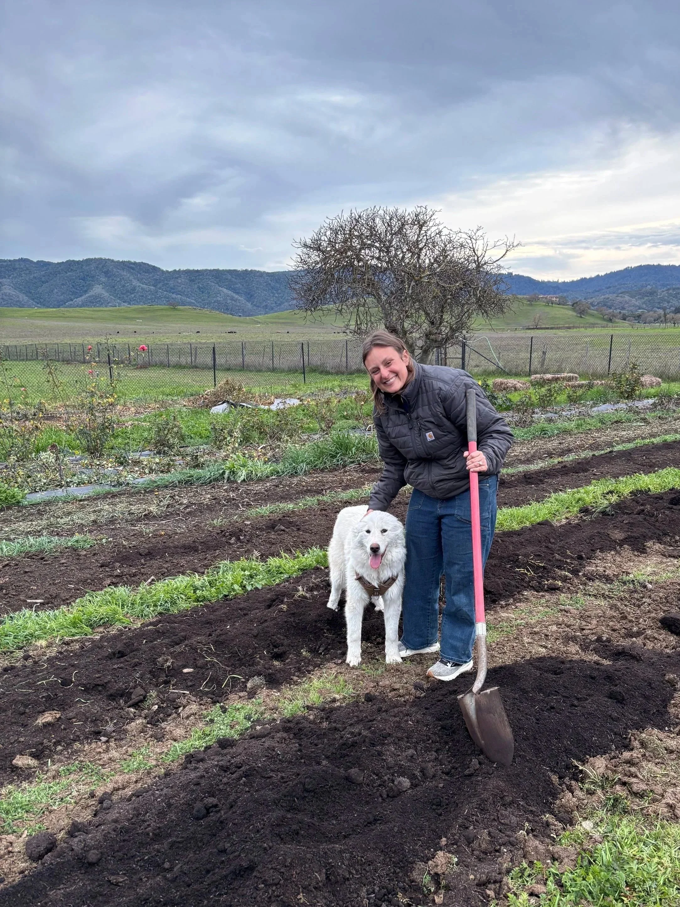 Originally from the Sierra Nevada Mountains, she now lives in Gilroy, California, an agricultural region south of the San Francisco Bay Area, a fertile valley wedged between coastal redwoods and dry golden hills. There, she runs a regenerative flower farm alongside her husband, the poet Todd Turnidge. She is currently raising two cows, one goat, 85 chickens, and three small humans.
